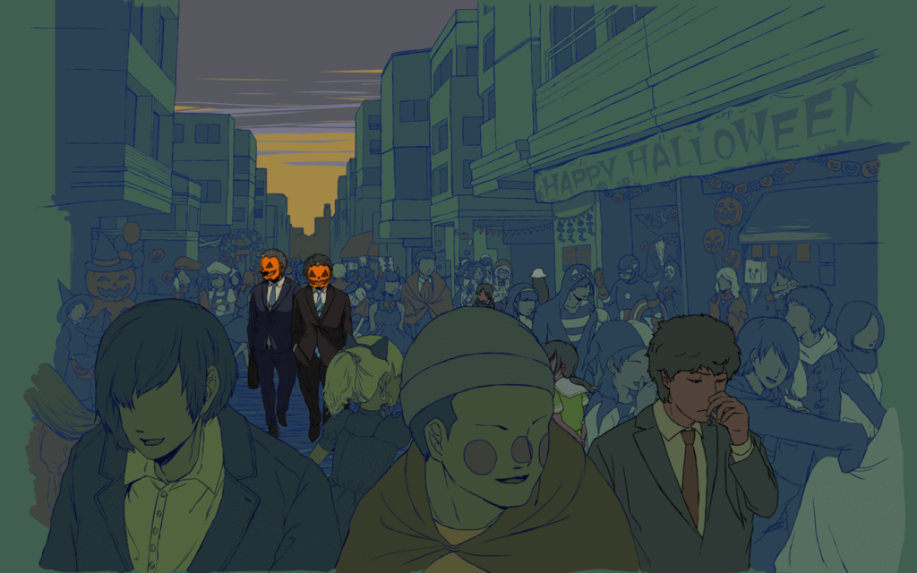 Novel ワンダリング・ジャックに捧ぐ ■ 1 ■ 2 ■ 3 ■ 4 ■ 5 就活をドロップアウトし、秋口にもつれ込んでしまった「俺」。内定は貰えず、留年する決意も持てない俺は、天国にも地獄にも行けずこの世を彷徨う「ジャック・オー・ランタン」に並々ならぬ親近感を覚える。Special Thanks:くらみち(@kamikaze11261)様 ふれあい ■ 1 祖父の訃報を受けて東京から松ヶ谷町に帰省した「私」は、散歩がてら立ち寄った町内祭りにて、祖父の担当介護士且つ祖父の死の第一発見者である「サイトウ」と偶然の再会を果たす。